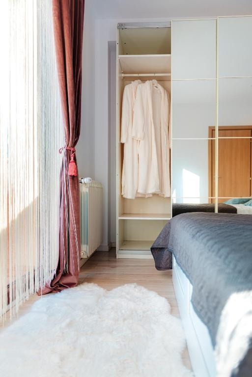 Apartamentul are 1 dormitor, living, baie, complet utilata, lenjerie de pat, prosoape, 2 televizoare cu ecran plat si servicii de streaming, o zonă de luat masa, o bucătărie complet utilată și 2 terase cu vedere la grădină. Oaspeti sunt intimpinati cu cafea gratuit, apa si sampanie. Acest apartament pentru nefumători și este izolat fonic.