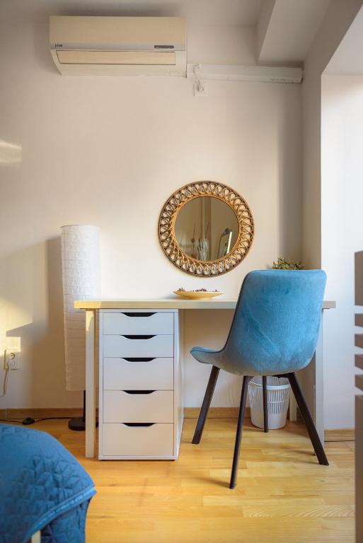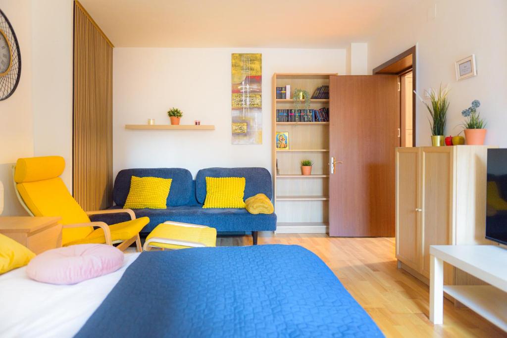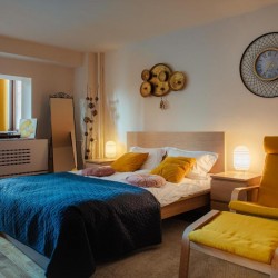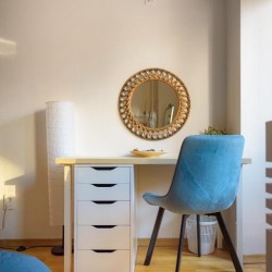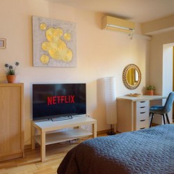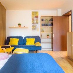 Studioul nostru a fost conceput pentru călătorii în grupuri mici, atât pentru sejururi lungi, cât și scurte, oferind o cameră cu bucătărie complet utilată și zonă de luat masa, un pat mare și o canapea extensibilă și un balcon cu vedere la parc și o baie.