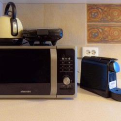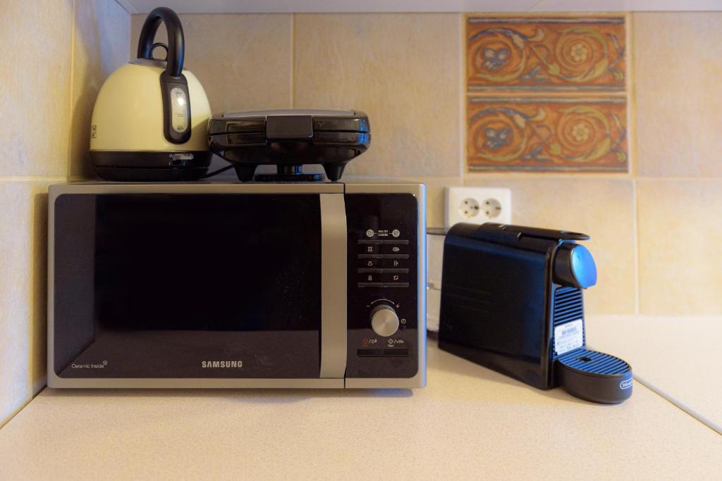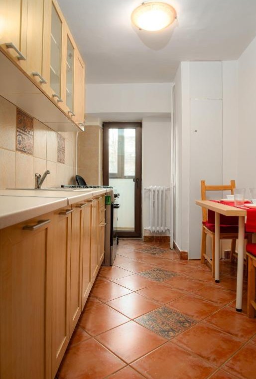 • Bucătărie complet utilată cu tigăi și ustensile de gătit, cuptor, aragaz și aparat de cafea